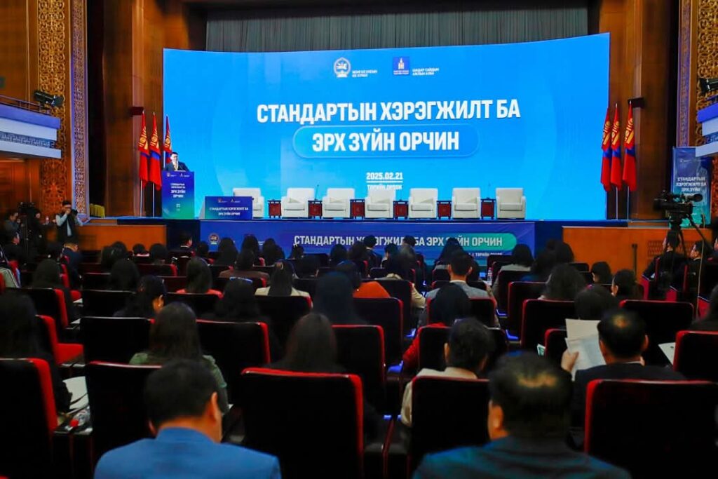 “Стандартчилал, техникийн зохицуулалт, тохирлын үнэлгээний итгэмжлэлийн тухай хууль”-ийн төслийг УИХ-д өргөн мэдүүлэхтэй холбоотойгоор “СТАНДАРТЫН ХЭРЭГЖИЛТ БА ЭРХ ЗҮЙН ОРЧИН” нэгдсэн хуралдааныг Төрийн ордонд зохион байгуулсан ба тус хуралдааны үеэр МБҮА ТББ-ын Гүйцэтгэх захирал Г.Батсүх