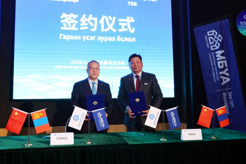 Уг Санамж бичигт МБҮА ТББ-ын Ерөнхийлөгч Н.Баярсайхан, CHINCA-ийн Ерөнхийлөгч Фан Чючен нар гарын үсэг зурж албажууллаа.